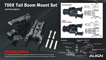 | ●Use for T-REX 700X/760X. ●The new tail boom mount is greatly reinforced to sustain the heavy gear abrasion during extreme 3D flights and to enhance the flight performance. |