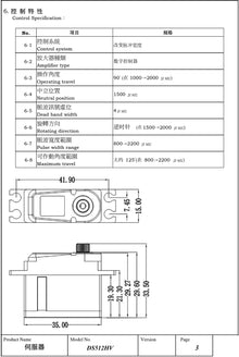 No load Speed 0.067 sec/60 (6.0V), 0.055 sec/60 (7.4v)